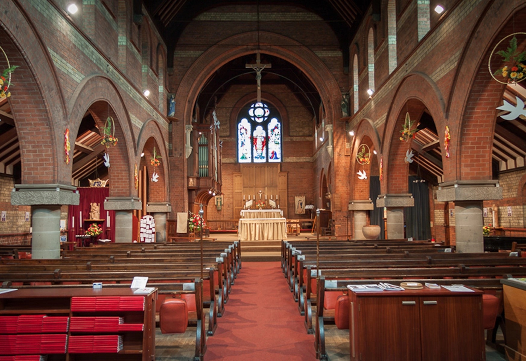 The Church is built of red brick and supported by stone pillars after the Early English style of Victorian Gothic architecture. It has a chancel, nave, north & south aisles and a porch at the west end. The Lady Chapel lies at the east end of the south aisle and contains the only pillar that is carved.